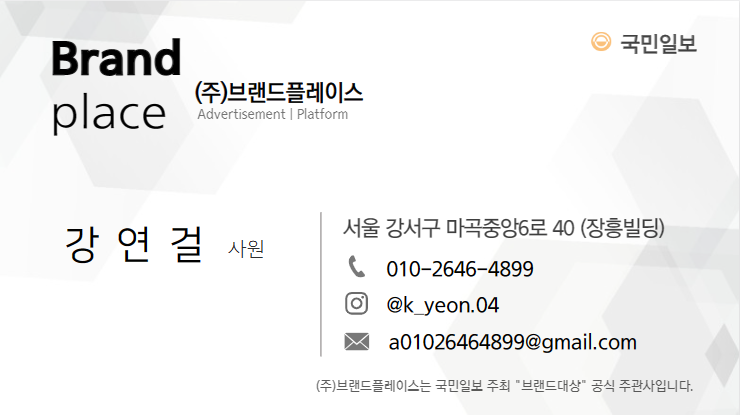 안녕하세요 , 저는 국민일보 브랜드 대상 시상관리팀 강연걸입니다.