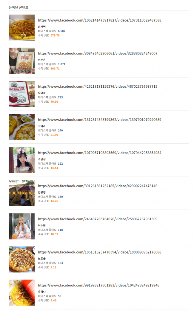 페북 인플루언서들이 올린 콘텐츠의 좋아요당 과금하는 형식입니다.