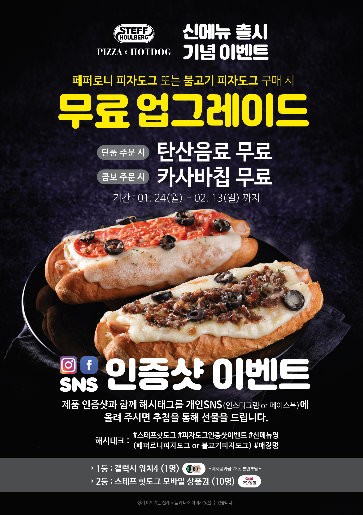 ★ 필수 해시태그 : #스테프핫도그 #피자도그인증샷이벤트 #신메뉴명(페퍼로니피자도그 또는 불고기피자도그) #매장명(방문매장명)