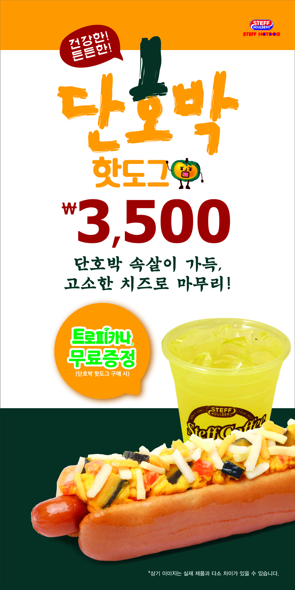 이번 신메뉴는 단호박 샐러드를 핫도그 토핑으로 활용, 덩어리째 씹히는 단호박의 든든함과 샐러드에서 주는 신선함을 동시에 느낄 수 있는 건강한 핫도그라고 스테프핫도그 측은 설명했다.