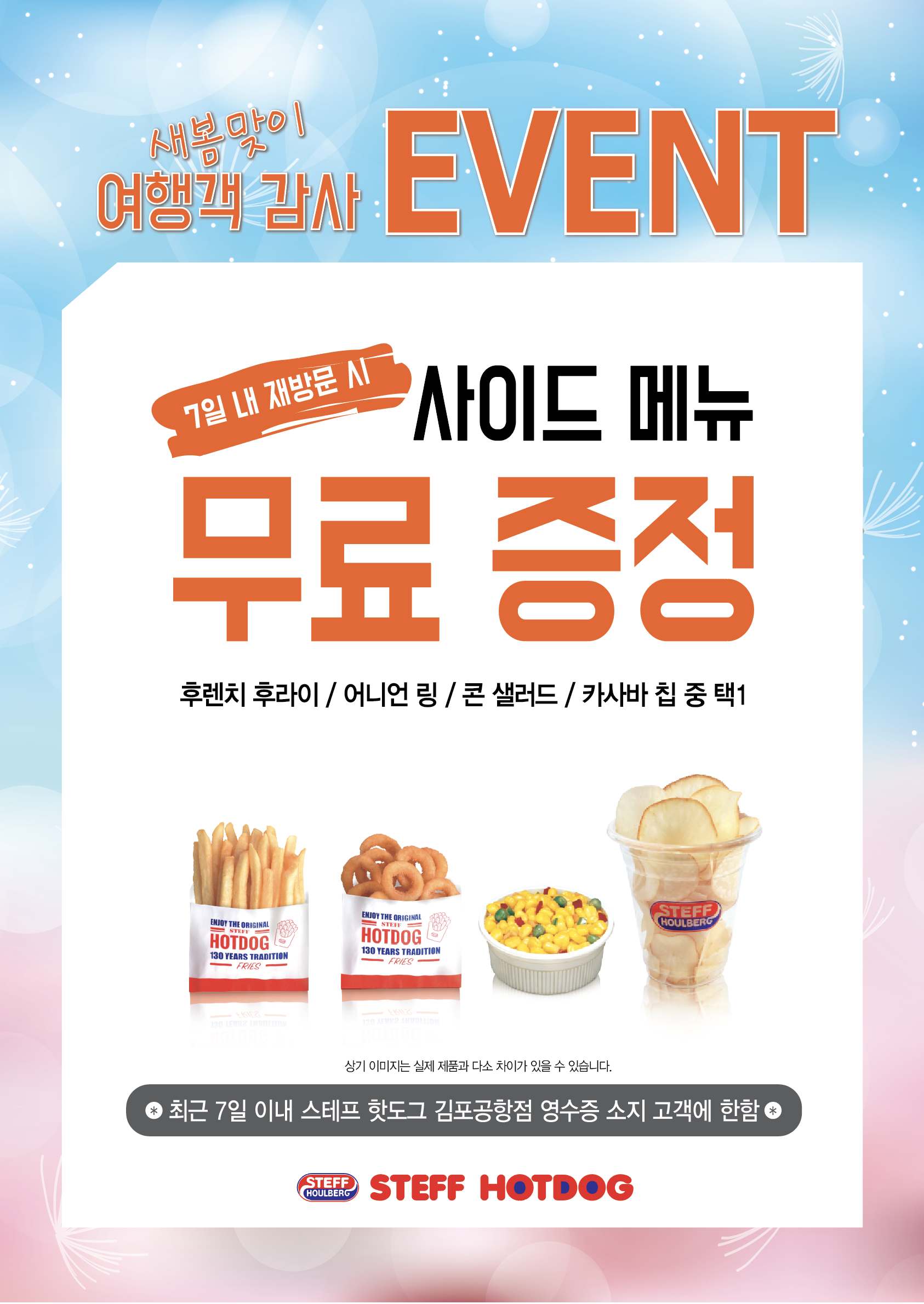 3.홈플러스 송도점(~4/30까지) : 핫도그 세트 구매시 "아메리카노(hot/ice 택)" 무료쿠폰 증정/ 사이드메뉴 구매시 '음료3종(택)' 1,000원!